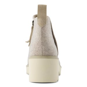 The Maude: a go-with-anything ankle boot that gives back. This lightweight style has a wedge heel and shimmering natural twill uppers for a hint of sparkle. Elastic gore. a side zip and CloudBound? insoles provide easy entry and long-lasting support.