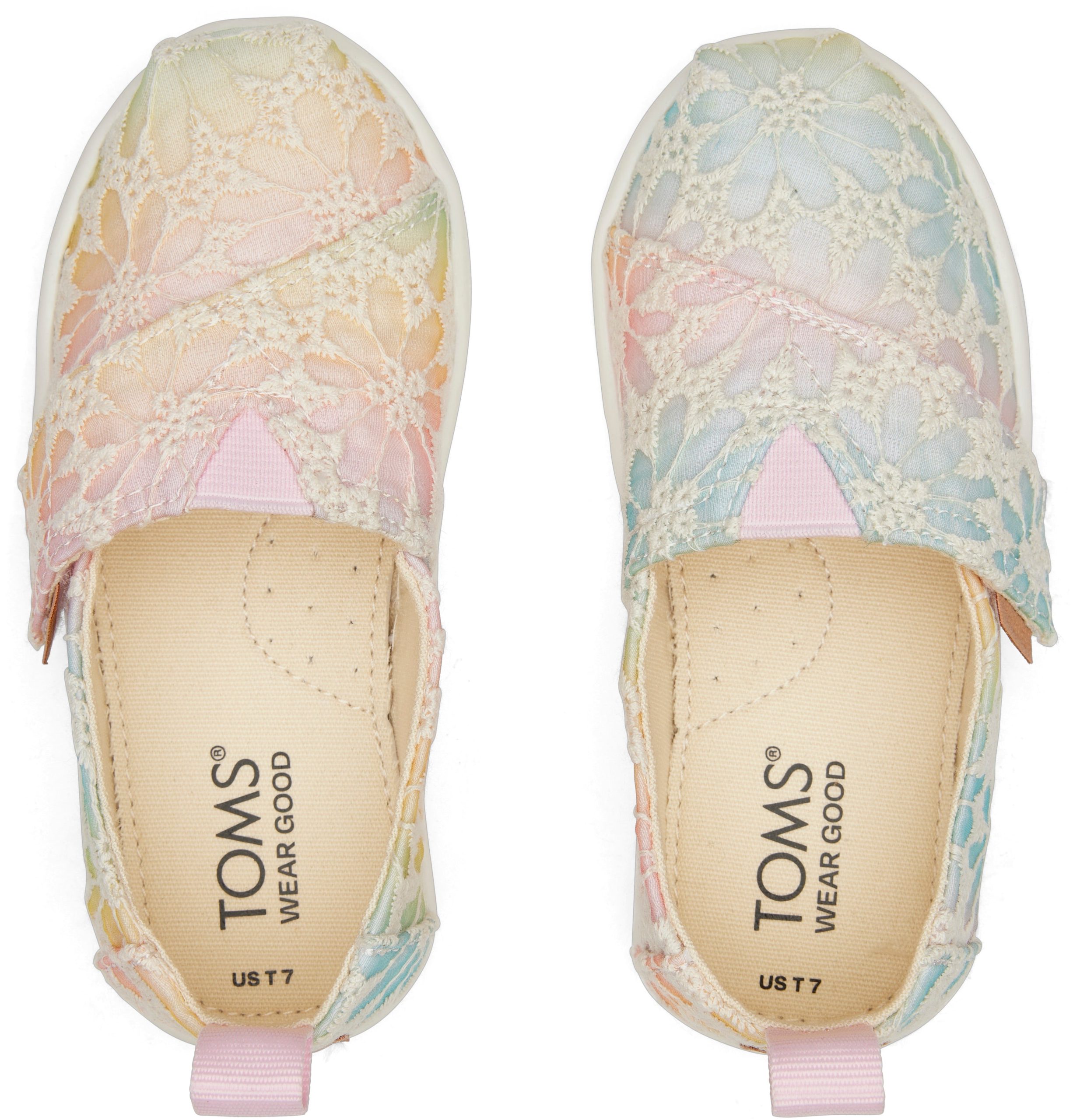 Our toddler kids Alpargata shoe in colourful ombre floral lace. The breathable textile uppers and cushy soles will keep your little one comfy for a full day of play. Plus. with a heel pull tab and easy slip-on design. they can put them on all by themselves!