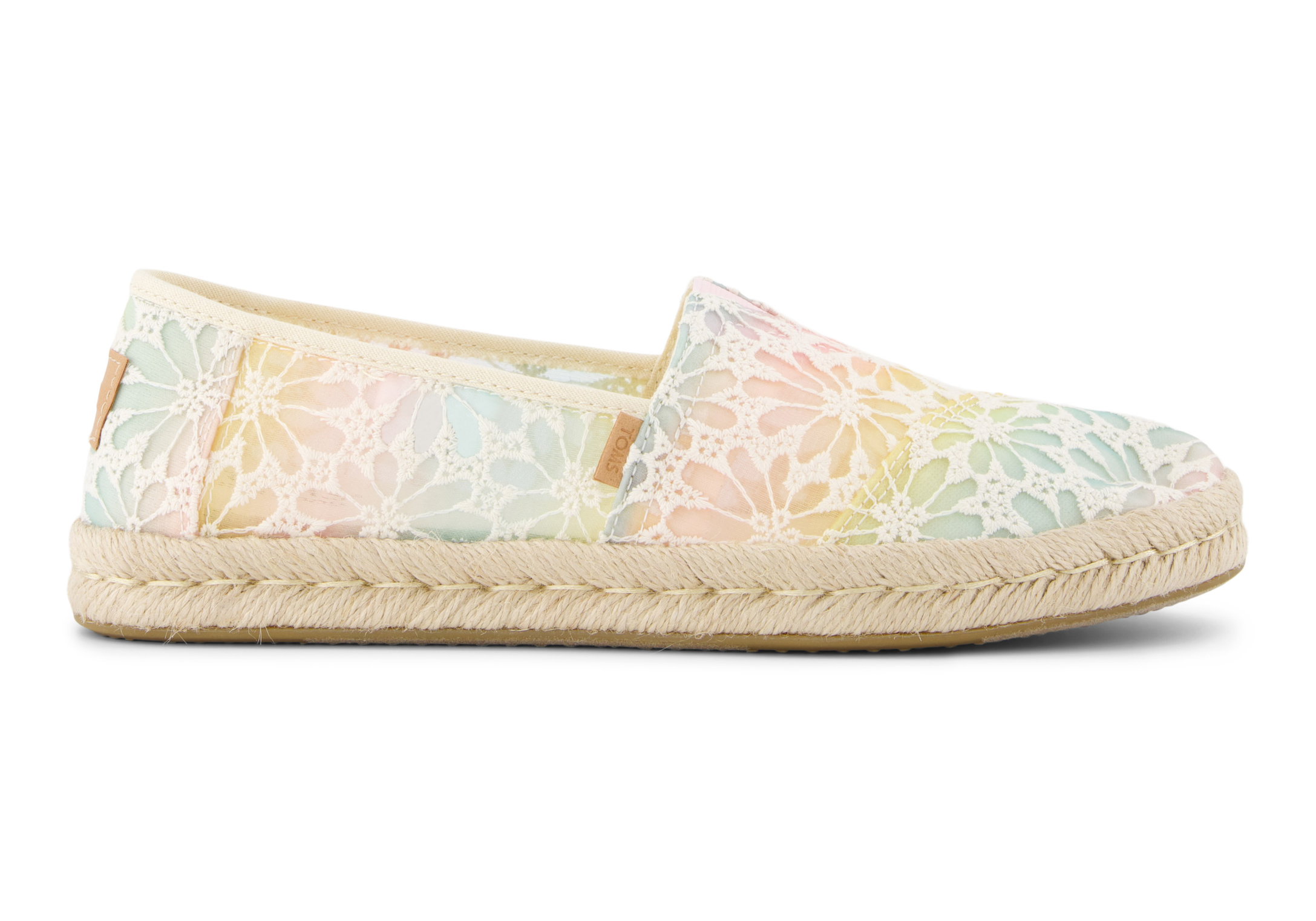 - Textile upper with ombre floral lace detailing.