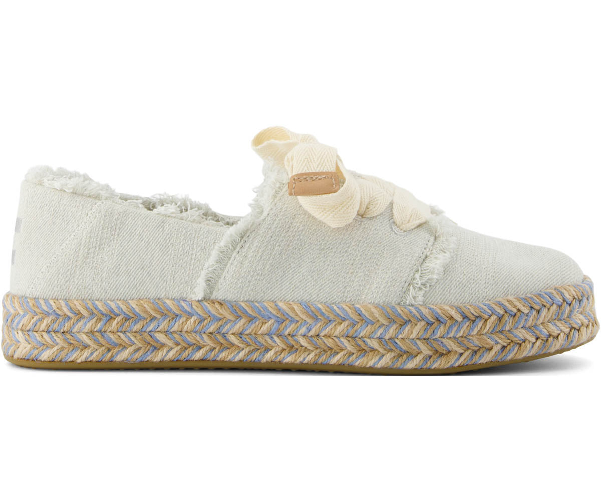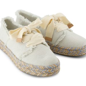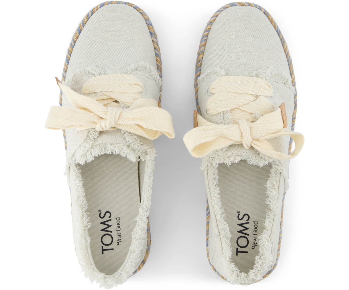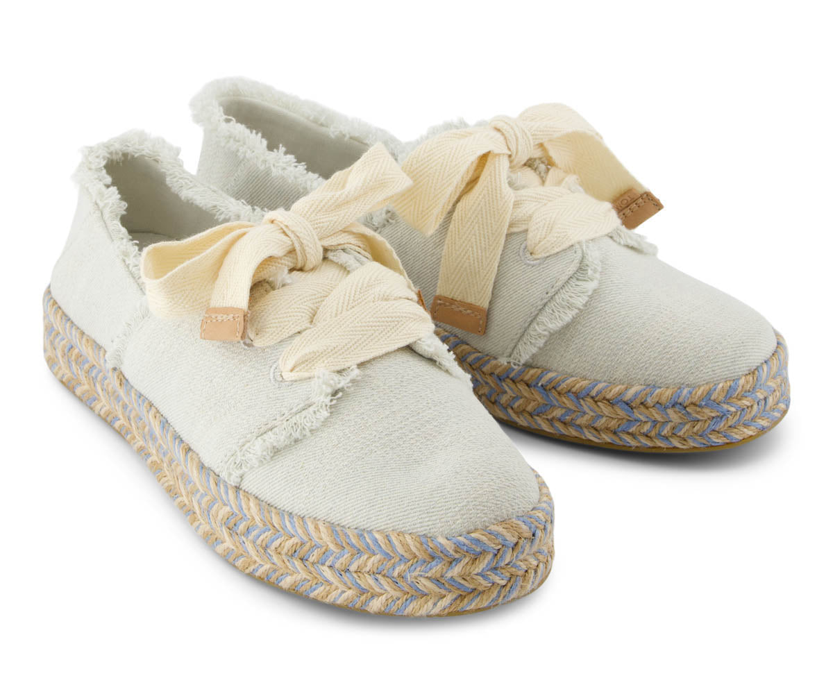 Der ultimative feminine Slipper. Unser neuer Carolina Lace-Up zeichnet sich durch ausgefranste Details. ??bergro?e Schn??rsenkel und ein mit einem Seil umwickeltes Plateau aus. das einen farblichen Akzent setzt. Schn??ren Sie sie mit Kleidern oder Jeans f??r ein bisschen Vorbereitung in Ihrem Schritt.Obermaterial aus strukturiertem Denim mit ausgefransten Details.